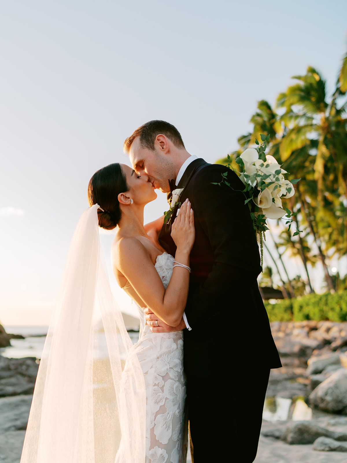Traveling from Japan to the shores of Oʻahu, this couple celebrated an intimate destination wedding at the Four Seasons Ko Olina. Surrounded by their closest loved ones, they exchanged vows in a lush garden setting before enjoying sunset beach portraits and a candlelit evening filled with love, laughter, and cocktails.